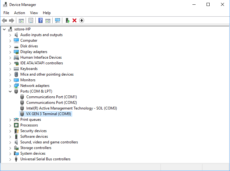 - In theDevice Managerof the Windows PC, the Verifone e355 should now appear underPorts (COM ; LPT)namedVX GEN 3 Terminal.